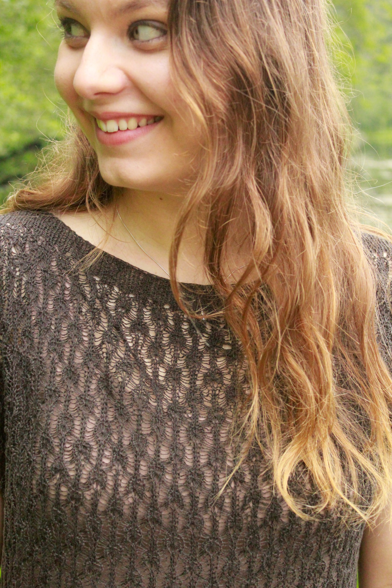 Pitsinen neulepusero, joka on neulottu sertifioiduista pellavasta ja luomu puuvilllasta