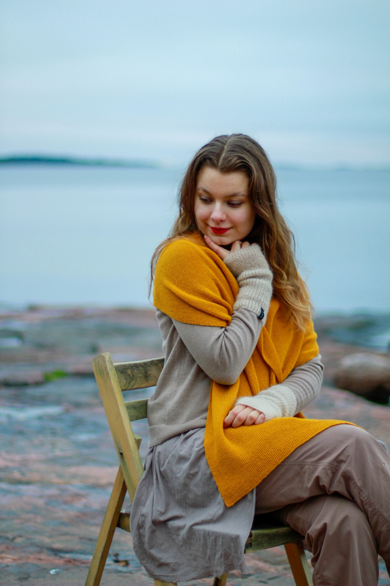 Älä säilytä neulottua huivia solmulla, ettei neulos veny. Kun säilytät neuleen tasossa, se pysyy kuohkeana ja kauniina.