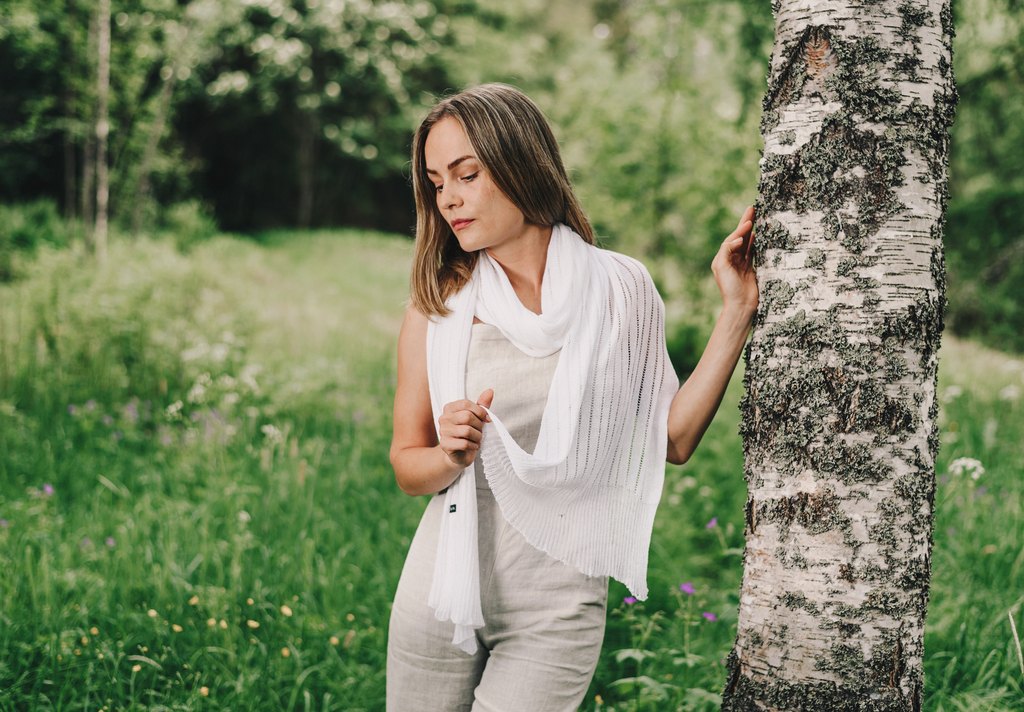 Myös pellava-tencel Tilda on pehmeä ja kauniisti laskeutuva huivi kaulalle ja hartioille.